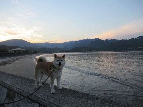 夕方散歩&朝散歩旅行記の続きです。この時は5月末だったので、夕食を済ませてからもまだ明るくて、夕食後海岸沿いをお散歩しました。海岸側から見た「サンライズ勝浦」。すぐ裏が海水浴場になっています。夏に宿泊すると海水浴が楽しめていいかも。海岸沿いをずっと歩きました。海岸沿いを歩いていくと、少し先にこのようなところが。「ブルービーチ那智湾海水浴場」です。ここ、前回の旅行の時にも来ています。芝生がたくさんあって、公園のようになっています。お散歩するのにいいところ。到着して少しすると、暗くなってきたので、このままホテルに帰ります。そして、翌日の朝です。ゴンおはよう。朝散歩も「ブルービーチ那智湾海水浴場」まで行くことに。曇っていたので少し残念だったけど、日の出が綺麗でした。「ブルービーチ那智湾海水浴場」に到着。海の景色が綺麗です。ここをゆっくり、気持ちよくお散歩できました。旅行記は今日はここまで。明日に続きます。