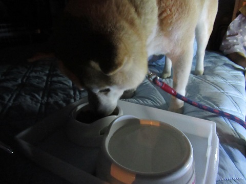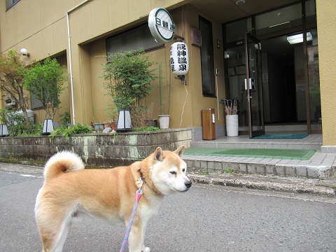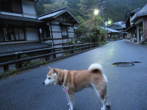 紀州美味しい会席料理旅行記の続きです。今日は「萬屋」での夕食を。その前にゴンも夕食。食欲満々です。私たちの夕食はこちら。予約時間に、メイン部屋向かいの食事部屋に行くと、このように用意されていました。こちらはお品書き。「紀州美味しい会席」です。まずは食前酒、紀州南高梅の赤紫蘇梅酒。付出し、いたどりの胡麻和え。前菜3種。茶わん蒸し。熊野地鶏のタタキ。炊合せ。鮎の塩焼き。メインは熊野牛ロースの鉄板焼き。では焼きますよ。焼き上がり~。柔らかくてすごく美味しかったです。天ぷら。お蕎麦。ライスはおひつで。お吸い物と漬物。大変美味しくいただきました。種類が多くてお腹一杯になりました。デザートはお部屋に置いておきます、とのことで、メイン部屋に戻ると、デコポンが2個置かれていました。🍊甘くて美味しかったです。1個を半部ずつ食べて1個はお持ち帰り。食事をしている間にお布団も敷かれていました。寝る前の夜散歩は、温泉街を軽く。ゴンお休み。旅行記は今日はここまで。明日に続きます。昨夜の関東地方の震度5強の地震、朝テレビを見てビックリしました。あちらこちらですごいことになっていたのですね。被害に遭われた方々、心からお見舞い申し上げます。