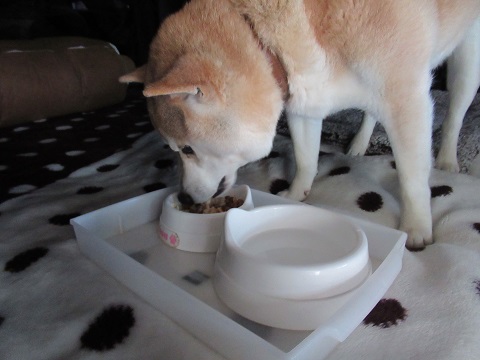 イタリアンランチ今日は先日のランチを。久し振りに「サイゼリヤ」に行きました。ちょうどお昼時、席はほぼ満席でした。すぐに片付けるので少々お待ちください、と、入口で少し待ちました。入口にあるドリンクバーコーナー。こういう席に案内されました。ランチメニューはこちら。500円で色々あるんですね。全品サラダ・スープ付き。スープはお代わりも自由です。私は「オニオンソースのハンバーグ」を選択。お父さんは「タラコとエビのドリア」を。そして、パスタも食べたかったので、この中から「ミートソースボロニア風」を単品で。400円です。お父さんはチキンが食べたいと、この中から「骨付きももの辛味チキン」を単品で。500円。セットのスープ。コンソメスープですが、ちょっと薄く感じたので黒コショウで調整。お代わりして、2杯目には粉チーズを入れてみました。コクが出て美味しくなりますよ。セットのサラダ。もう少しレタスとか、葉物が欲しいと思いました。葉物が高い時期だったので仕方ないのかな。パスタから来ました。ミートソースボロニア風。シェアして食べました。お父さんの、たらことエビのドリア。一口もらったけど、たらこの味がしっかりでした。お父さんの、骨付きももの辛味チキン。これも一口もらいました。ピリ辛でご飯がすすむ味でした。私のオニオンソースのハンバーグ。安定の味でした。お腹一杯になりました。サイゼリヤ、リーズナブルに色々食べられていいですね。今回は頼まなかったけど、私、ここの「辛味チキン」が好きで、テイクアウトできる、ということだったので、こちらをテイクアウトすることに。約40ピース入りで2200円。こちらです。冷凍されていて、これをレンジで2分解凍し、オーブントースターで10分焼くだけ。自宅でお店の味がお手軽に食べられていいですね。と、いうことで、別の日になりますが、焼いてみました。これで半分です。いい感じに焼けました。熱々が美味しい~。お店で食べる味と同じです。この日の献立は辛味チキンとパスタとサラダ。パスタは先日モラタメで試した「Bistro Do」の、「豚のアンチョビガーリック」のソースで和えました。食べているといいにおいがするのかゴンがソワソワ。ゴンにも。いつものフードにトッピングです。待て~。よしっ。ガツガツでした。美味しかったね。辛味チキン、また食べ切ったら買いに行きたいです。ではまた