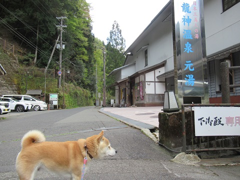 萬屋(よろずや)旅行記の続きです。龍神温泉でのお宿に到着です。泊まったのはこちら、「萬屋」です。萬屋の看板。ゴンは車中泊。ゴンを車に置いて中に入ります。入ってすぐに「日本三美人の湯」の看板が。日本三美人の湯とは、ここ和歌山県の龍神温泉と、他は群馬県の川中温泉、島根県の湯の川温泉なのだそう。こちらがフロント。チェックインを済ませ部屋へ。まずは8畳の和室です。広縁。窓からの景色。洗面・トイレ。温泉があるので部屋にお風呂はありませんでした。 「龍神温泉元湯」の割引券が置かれていました。お宿から100m先にあるのだそう。通常800円が650円に。温泉のお湯はこのお宿と同じだ、とのことだったので、今回はお宿の温泉を堪能させていただきました。そして、もう一部屋。6畳の和室。ここは向かいの部屋になります。食事専用の部屋。ちゃんとテレビもあります。少し休憩してからお散歩へ。龍神村のガイドマップ。私たちは現在右下の龍神温泉街にいます。昔ながらの温泉旅館が数件。ゴンが眺めているのは・・・、この景色。川沿いに数件の旅館やホテルが建っています。またまた吊橋が。今回は渡りませんでした。川沿いをゆっくりお散歩しました。旅行記は今日はここまで。明日に続きます。
