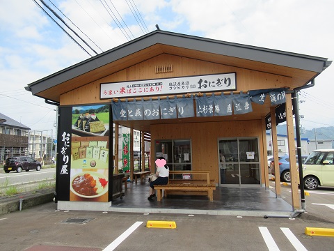 おにぎりランチ旅行記の続きです。古城館をチェックアウト。南魚沼に滞在中なのですが、南魚沼といえばお米。この日のランチはおにぎり屋さんで。塩沢産の魚沼コシヒカリ100%のおにぎりです。ここでもお米が売られていました。おにぎりの具のメニュー。私は塩と鮭、お父さんは塩と味噌漬けを購入。大きなお釜が。南魚沼市は直江兼続公の生誕の地でもあるのですね。そして、次に向かいます。途中の道の駅でトイレ休憩。「道の駅 越後川口 あぐりの里」です。道の駅の中。ゴンのトイレ休憩ですが、ここではお散歩するところが無くて、近くの公園に移動です。一旦ここまで。午後に続きます。