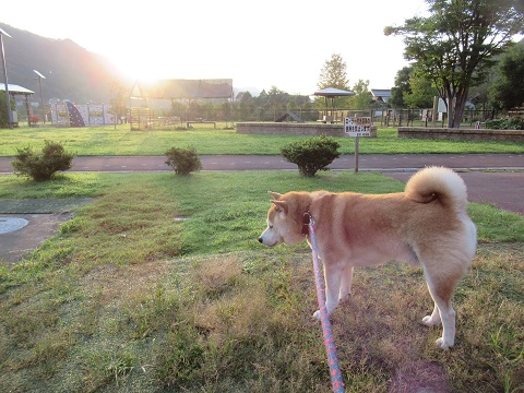 2度目のお散歩先日、伊勢に買物に行った時のお散歩。行きにも寄ったのですが、買物のはしごが結構時間がかかってしまって、ゴンのトイレのため帰りにも寄りました。行きにも寄った同じ公園、「宮リバー度会パーク」。駐車場はちょうど真ん中辺にあるのですが、今度は行きとは反対側へ。子供の遊具がたくさんある「チビッコロード」へ。こちらにも急須の水飲み場があります。蹴り蹴り。休日にはいつも子供でいっぱいの遊具、平日なので閑散としていました。クンクンチェック。こちら側の方が歩く距離が長いかな。公園の端っこまで行って反対側の通路を戻りました。約40分くらいのお散歩でした。やっぱりここはお散歩するのにいいところです。他にもワンちゃんがお散歩していました。
