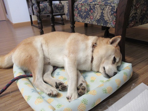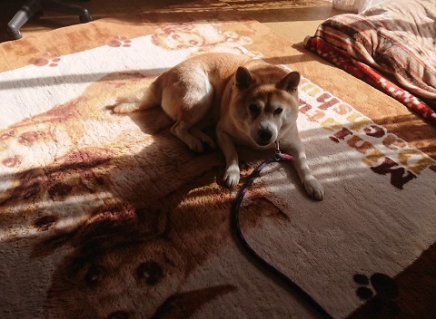 暖かいね寒い日が続いています。そんな時のゴンの寒さ対策は、日当たりのいいところでの日向ぼっこです。我が家で一番最初にお日様が照りだすところ、リビングの東側です。日が照ると、ゴンはそこに移動。日向ぼっこをしながらウトウト。暖かいね。窓際のマットの上で爆睡。こんな感じで日向ぼっこを満喫しています。昼間、お散歩と食事のとき以外は、ほとんどここでお昼寝しているかな。
