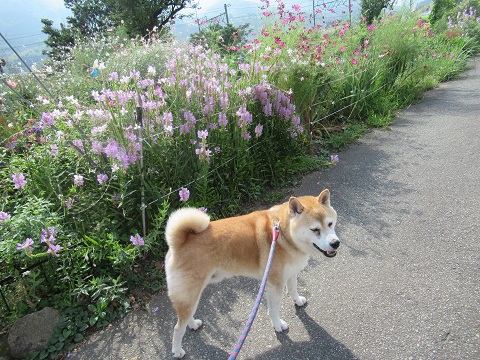 ドッグランへ旅行記の続きです。車中泊した「道の駅 あがつま峡」、ここには公園があり、その一角にドッグランもあります。朝散歩を兼ねてドッグランの方へ。2つのドッグランがありました。そのうちのひとつへ。まずはクンクンチェック。広さは十分です。ゴンはウロウロ。自由に動けるって楽しいね。そろそろ満足したかな。ドッグランを出て公園の方へ。足湯がありました。♨広い芝生。この広い公園を1周します。1周が250mだそう。この時咲いていた花。1周、ゆっくり歩いて30分くらいでした。水をゴクゴク。ワンちゃんがやってきました。秋田犬です。吠えもせず大人しいワンちゃんでした。道の駅の案内図。朝食はテラス席で。コンビニで買っておいたパンを。こういう席です。旅行記は今日はここまで。明日に続きます。