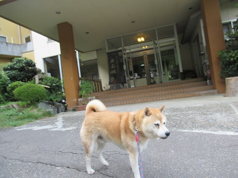 新潟での2軒目のお宿旅行記の続きです。新潟でもう1泊するのですが、そのお宿に到着です。わんこと泊まれるお宿、「上州苑」です。お宿全体。看板前で。チェックイン中のワンちゃん。玄関で靴を脱ぎ、スリッパに履き替える、昔ながらの旅館タイプです。ロビー。チェックインを済ませ部屋へ。途中に電子レンジがありました。お部屋です。和室。もうすでにお布団が敷かれていました。広縁。お茶のサービス。冷蔵庫には有料ドリンク。洗面。 バス・トイレ。バスは温泉を利用したので使いませんでした。 十分な広さで、くつろげました。ゴンはお父さんに甘えっこ中~。一旦ここまで。午後に続きます。