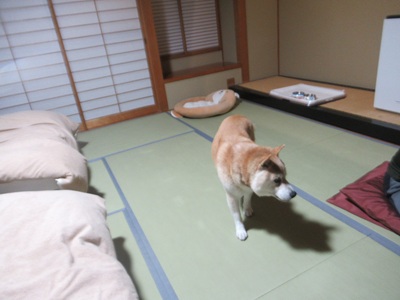 和ベッドルーム旅行記の続きです。ホテルに戻りました。「大江戸温泉物語わんわんリゾート粟津」。2泊目なのですが、1泊目と同じ部屋で取れず、部屋を変わりました。1泊目は和室に布団だったのですが、2泊目は和室にベッドのお部屋。前室。ゴンは水をゴクゴク。広縁。洗面。脱衣場。バス。トイレ。壁に飾られていた写真は柴犬でした。ゴンがウロウロするには十分の広さです。ゴンの夕方散歩。粟津温泉街を。同じところばかりなので、毎回同じような写真ですが。黄門杉の道路。小さな公園。旅行記は今日はここまで。明日に続きます。