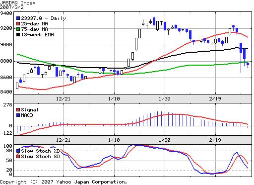 思ったよりもJASDAQが弱いです。これを見ると、中期ではチャートが崩れちゃいましたね。しかし全体では-5%程度の下落なのに対して、バリュー株ポートフォリオに関しては3日間でマイナス1%程度のダメージで収まっています。本格的な下落ではないとは思いつつも、全体が崩れたので個別銘柄でもストップ・ロスはきつめにしておいた方が無難なのかも知れませんね。上か下かはどちらでも構いませんから、さっさと白黒つけて欲しいです。