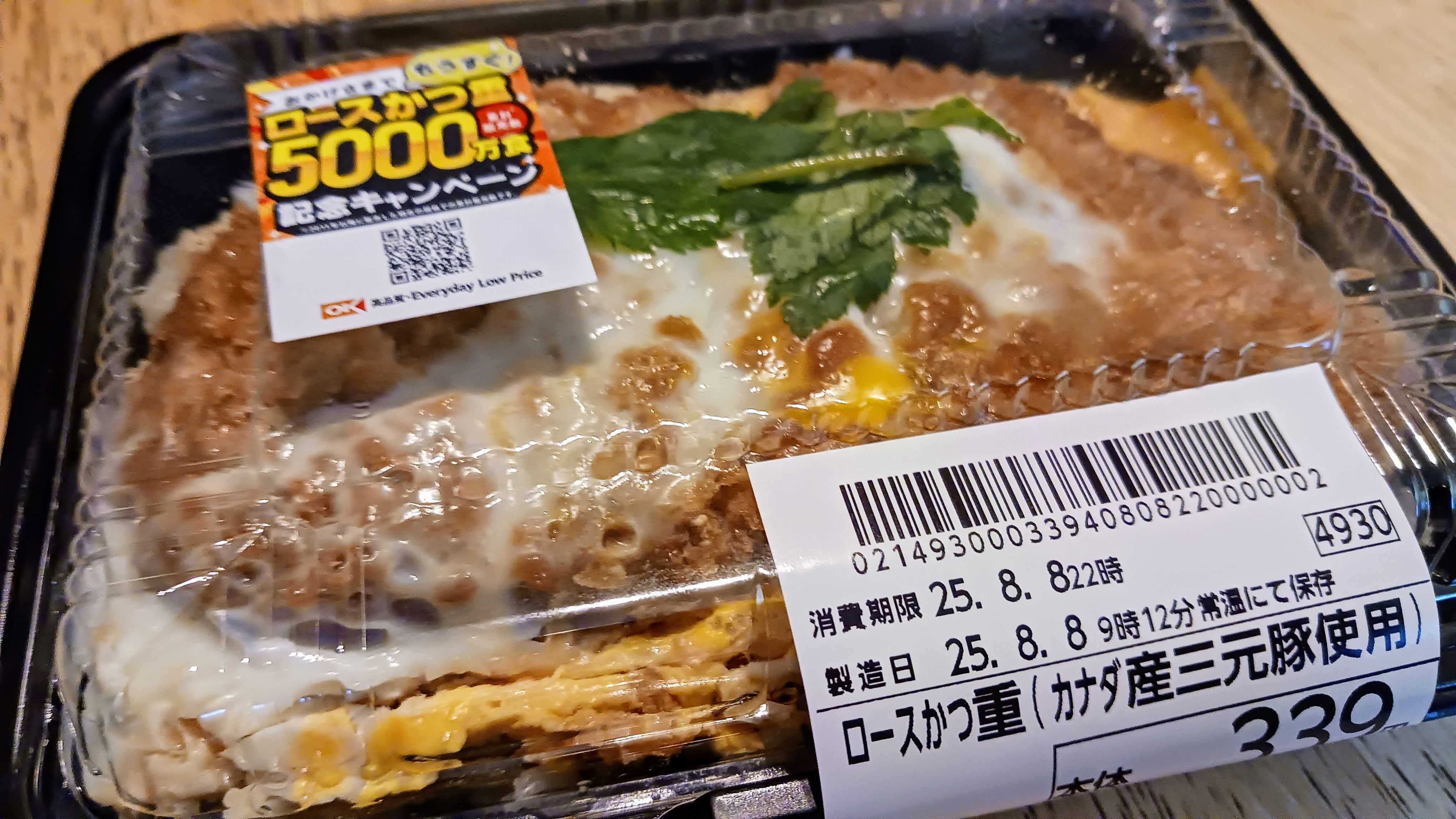 カツ丼が339円!激安ですね。税込み価格が366.12円なんですが、何でこの店の商品は値段の切りが悪いのかな?いつも思います。肉質はやや硬めでジューシーさはありませんが、抜群の噛みごたえ(良い意味です)。そして、豚肉の旨味も感じます。量も丁度良くてかなり満足です。
