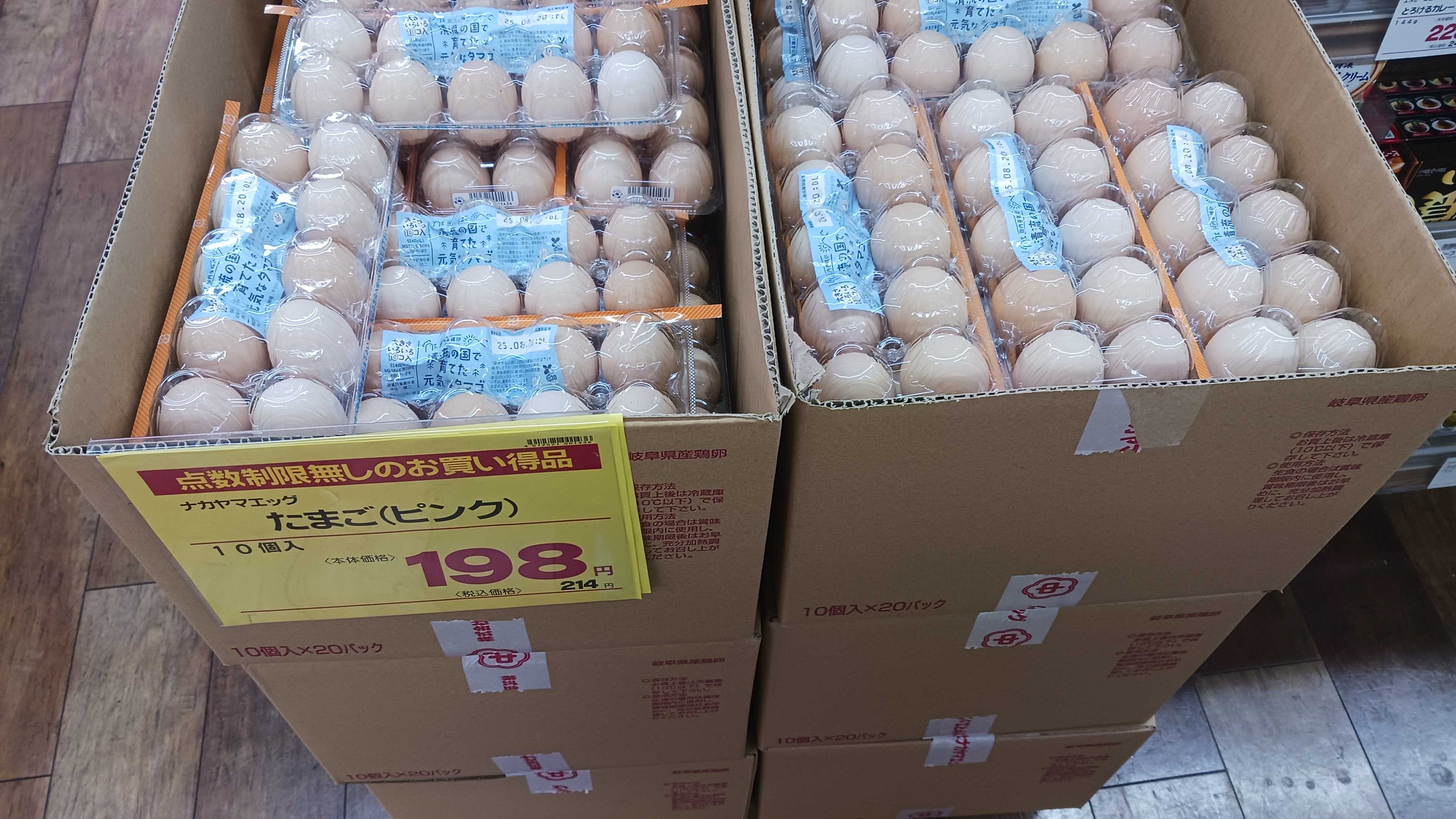 「肉のハナマサ」卵10個 198円少しずつ下がり始めた気はするが、高止まり傾向。