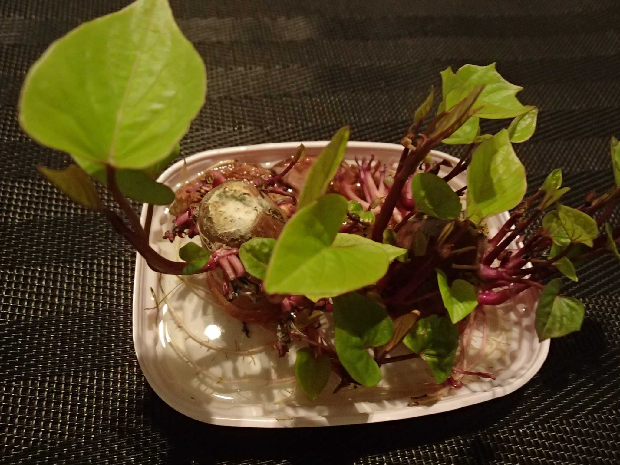 芽が出たサツマイモを見て思い出した。子供のころに食べた味噌汁に入っていたサツマイモの茎のほのかな甘さと独特の香り。八百屋で売っているのを見たことは無いが、芋畑の地上に伸びた蔓状の茎はよく目にする。懐かしいあの味をもう一度味わって見たいが、叶わぬ夢か。