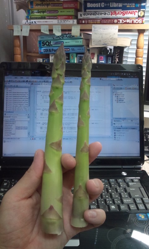 事務所の裏で採れたそうです。2本しかありません。どう食べる?