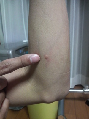 お風呂あがりとかでしばらく経った後、痒いな~と思ってポリポリして、ふと腕を見てみると前と全く同じところに蕁麻疹が!!