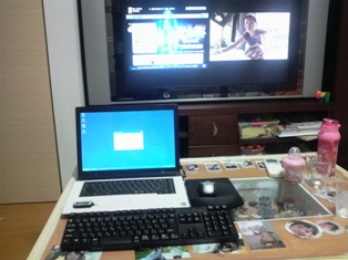 テレビを分割画面でゲームとテレビにしてノートPC見てます(笑)