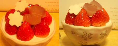 ホワイトデーだったので、彼がケーキを買ってきてくれました!ホワイトデーのお返しもらうの何気に初めてだったりして、ものすごくウレシイ!!近頃私が「いちご食べたい・・・」と言いまくってたのでいちごのケーキを2つもちろんパティスリーヨシカのです1つはいちごたーーーーっぷり!の「苺桜」苺桜ってことで、下のクリームは桜風味!!中はしっとりのスポンジ、さらに苺とクリームが層になってます。ケーキで桜って初めてで、なんだか和風な印象でした器もとってもカワイイ!!もうひとつは「ほのか」こちらもいちごたっぷり・・・・幸せこっちのクリームは苺クリーム。少しざらざらした舌触りで甘めでした。いちごみるくって感じ紙をはがすときれいで感動しました!中はクリームたーーーぷりどちらもとっても美味しくて大満足幸せなひとときでごさいました