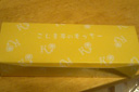 最近テレビで何度か紹介されていてすっかり全国的に有名になっちゃったこじま亭のもっちープリン!!福岡三越でしか売ってない!ということで通販はずっと完売状態らしい。。。せっかく福岡に住んでるんだし、そんなに人気なら食べてみなくちゃってことで、三越に行ってきましたよ。お昼過ぎると並んでるようですが、10時半くらいに行ったら余裕で買えました3個入りで630円。 ・・・箱がカワイイ。。「こじま亭のもっちー」って書いてあります。はやく食べたいよーーーー。て気分におされつつ彼も食べたがってたので帰って来るまでおあずけ。大変でしたw帰ってきたら即試食! やわらかくってうまく切れなかった・・・・(泣ぱくり。かぶりついた瞬間、2人で「んーーーーーーーー」おもち、やわらかーーーーー!雪苺娘のようなぎゅうひを想像してたのでびっくり。ほんとにおもち。普通の大福とかよりやわらかいような。。雪見だいふくを想像してもらえばいいかも。1個半づつ、ぺろりでしたw人気のあるものはやっぱり美味しいんですね