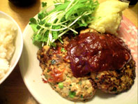 今日のゴハンはハンバーグ♪ヘルシーに豆腐ハンバーグにしました豆腐一丁にお肉は100gくらい。お肉は少しだけだけど、たまねぎもはいってるのでジューシーで私の実家のハンバーグはいつもニラ入りの煮込みハンバーグでした。だから今日はニラ入り☆豆腐でやわらかいので煮込みはできなかったけど。ハンバーグ久しぶりに作ったし、懐かしくて美味しかった~。