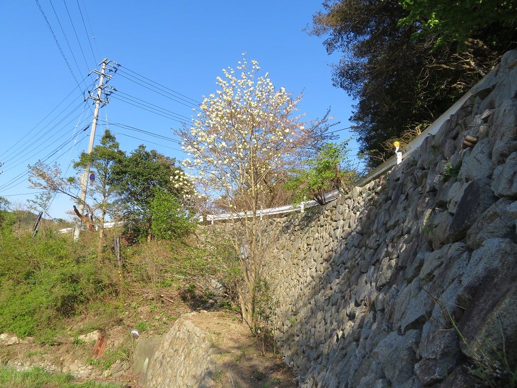 石段を下りて撮ったのですが、入り口の桜と重なり分かりにくいので、
