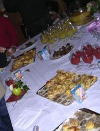 週末2日分の日記です。17日土曜日は昼前にパリから友人カップルが私たちの住む街に到着。彼らとは昨年末の我々の結婚式以来、約一年ぶりの再会です。今回はマプッペに会うのが目的で、夫の休暇に合わせて泊りがけで遊びに来てくれました。私たちも生牡蠣や帆立貝などの海産物をたくさん用意して出迎え、家でランチをとりました。かれこれ3時間ほどマプッペも交えながら話に花を咲かせた後(私は途中、授乳のため退席しましたが)、私たちは元々の予定にあった、夫の会社主催の子供たちのためのクリスマス会へ(この間は友人達とは別行動)。社員の子供たちのために開かれるこのクリスマス会では、クリスマスに因んだ寸劇や絵本読み聞かせなどの催し物をはじめ、おやつの時間にはサンタに扮した社員から子供たちへプレゼントが配られます(プレゼントは事前に各子供たちの親が用意)。マプッペはまだ観劇や読み聞かせには参加できないので、サンタクロースに会うためにおやつの時間のみ参加してきました。会場に着いたら、既にサンタはたくさんの子供たちに囲まれながらプレゼントを配っていました。その姿を興味深そうに見つめるマプッペ。写真を撮るのも困難な状況だったので、落ち着くまでその場を離れてドリンクタイムです。写真のオレンジジュースだと思ってとった飲み物は、テキーラの入った大人向けのカクテルでした。普段ならノープロブレムですが、授乳中の身なので即座に夫行き。テーブルの上には他に小さなキッシュなどのお酒のつまみ向けオードブルやトリュフチョコなどがあり、子供用テーブルには紙パックのオレンジジュースやクロワッサン、パン オ ショコラなどのヴィノワズリーとお菓子が並んでいました。夫がメールの添付書類をちゃんと確認しておらず、このプレゼント配布システムを知らなかった私たち。そのために全国のデパートやおもちゃ屋で使える商品券が事前に自宅に送られてきたのね…気づくの遅いマプッペはまだ小さいのでセーフだけど、これが物心ついた年頃だったら、何で自分はサンタさんからプレゼントがもらえないの?って思ったかも。。冷や汗何人かの人と挨拶したり歓談をした後、サンタさんとマプッペのツーショットを撮って会場をあとにしました。サンタさんの腕の中でぐっすり眠っています会場内では途中から既にパパの腕の中で熟睡状態だったマプッペ。普段家ではあまり寝ないのに、珍しくこの日は家に着いてからも寝っぱなし、おかげで再び合流した友人達とはゆっくり夕食を楽しむことができました。人が多いところで適度な騒音+ずっとパパの腕の中にいたことが良かったのでしょうか?友人達とは翌日の日曜日も家の中でマプッペと遊びながら、飲んで食べてとまったり過ごしました。夕方彼らがパリへ戻ったのと入れ代わりに、今度は近所に住む別の友人カップルがりんごのタルトを持って来訪。またもやマプッペと遊んで帰っていきました。彼らとも私たちの結婚前からたまに一緒に食事をしたりする仲でしたが、マプッペ誕生以降はさらに頻繁にうちに遊びにくるようになった気がします。この2組のカップルとも未婚で、自分達の子供はまだ考えられないといった雰囲気ですが、こうしてマプッペに会いに来てくれる様子を見ていると赤ちゃんが人を惹きつける力ってあるなと感心します。そして、そんな彼らに期待通り(?!)の笑顔をみせ、愛嬌をふりまくマプッペを頼もしくさえ思う、親馬鹿な母…でもこの日もいろんな人に遊んでもらって興奮したのか、なかなか寝ませんでした。もっと外に出掛けて疲れさせたほうがいいのか、彼女の睡眠についてはいろいろ模索中です。