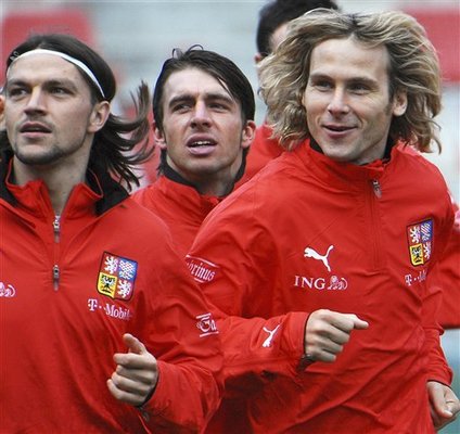 えぇ、昨日の対豪戦後は私も皆さまと同様放心状態でしたよ・・・でも過去を悔やんでも仕方ないので、次行きましょ~、次~。しかし、昨夜はそんなショックを和らげてくれる結果もありました。♪♪♪チェコの勝利です♪♪♪チェコは私にとって、フランスに次いで長期滞在経験のある国(といっても夏の間だけですが)。ちょっとした思い入れもあるので、応援せずにはいられません。昨夜の対アメリカ戦では、ユーロ2004杯で得点王に輝いたミラン・バロシュ選手を欠いたにも関わらず、素晴らしいチームプレーで見事なゴールを決めていました☆そんなチェコのスター選手が、パヴェル・ネドヴェド(パベル・ネドベド)です。向かって右手にいるのがネドヴェド。FIFAのオフィシャルサイトより拝借昨夜も3得点のうち、2点をアシスト(1点めは試合開始5分後で、見逃してしまいました)!サッカー選手としては小柄(175cm)、でも存在感は十分過ぎるほどある人です。今年で34歳になる彼、一度は代表の座を引退しましたが、ワールドカップ地区予選での母国の予選敗退危機を受け、監督に説き伏せられて復活しました。・・・この経緯はなんだかフランスのジダン選手とほとんど一緒ですね。年齢も同じだし、ポジションも同じ。そしてネドヴェドはジダンの抜けたイタリアリーグの名門クラブ、ユヴェントスに迎えられて現在もプレーしていますから、選手としてのキャラクターは違えど、どこかで繋がっている(気のする)両者です。さて、チェコにとっては、92年にチェコスロバキアから独立した後、初めて参加資格を得たFIFAワールドカップ。来週の対イタリア戦は熱戦が予想されますが、是非とも予選を通過してほしいものです。その美しい白髪姿に思わず「おじいちゃん」と呼んでしまいそうなブルックナー代表監督もいい味だしています。監督のキャラクターがいいといえば、ポルトガルの代表監督もそうですね(得点時に彼が喜ぶ姿は見もの♪)。両者ともユーロ2004杯でそれぞれチームを準決勝、決勝まで率いた実力ある監督なので、単なるキャラクターの愛らしさ(?)だけでは片付けられない方達ですが。代表監督といえば、日本がジーコ監督の後任として現在、元フランス代表監督のエメ・ジャケ氏にオファー中だと一部で報道されたと聞きましたが、本当でしょうか。彼はチームがワールドカップ優勝、という最高の形で代表監督を辞めているので、ここで再び挑戦するのかどうか注目ですね。因みにフランスでも当然ジーコ監督の選手時代は有名ですが、フランス人には彼の名前を「ズィッコ」と言わないと通じません。アルファベットではZicoなのだから、「ジーコ」と表記するほうが無理があるのですけれども。。あと監督話でもうひとつ。今日スイスとの初戦を迎えるフランス代表ですが、フランスの民放局M6でワールドカップ報道番組のプレゼンターを務めているのは、現フランス代表監督、レイモン・ドメニク氏の私生活でのパートナー(彼女)なんです。写真真ん中の女性がそうですどうするんでしょう、もしフランス代表がボロボロだったら・・・キックオフは本日の現地時間午後6時。今夜このあたりではあちこちで「ウォー!」といった歓声が聞こえてくることでしょう。何が起こるか分からないのがワールドカップ。最後まで楽しんで観戦しましょう~