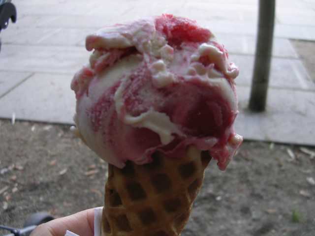 もう1歳過ぎと言っても違和感ない体格のマプッペですが、本日で満11ヶ月です。体格も立派だけれど、誰に似たのか反射神経がなかなか鋭くて、私の膝の上に乗せたと同時にテーブルのグラスに手を掛けていたり(@カフェ)、セッティングをしている母の手からおもちゃを奪っていって、とり返そうにも、またものすごい勢いで引っ張っていく、等等。・・・・・・単に母親の私が鈍いとか?うーーーーん(汗)それはさておき、運動面の発達は次なるステップ(ひとりで立つ・歩く)へ向けて徐々に進歩を見せています。歩くほうは手押し車を押すように、キャスター付きの椅子を掴んで速さをコントロールしながらしっかり前へ進んでいるし(たまに回っている)、まだ長い時間は無理ですが、立つほうも両手で物を持ったまま、足を踏ん張って立つ姿が安定しつつある今日この頃。あと離乳食。今日彼女にとってはじめての魚である真鯛をほぐしたものをあげましたが、いつもと変わらない様子でよく食べていました。これからは魚を摂る機会も増えそうです。話は変わって前日日曜のこと。8月最後の日曜である昨日は、天気もよく爽やかな陽気だったので、近所に住む友人も誘って一緒に川沿いを散歩してきました。この川沿いへ足を運んだそもそもの目的は・・・これです。La Fraiseraieのアイスクリーム♪ (ピンボケですみません)La Fraiseraieは、苺(仏語でFraise)の加工品(ジャム・リキュール類)を生産・販売しているお店で、大西洋側の海岸を中心にいくつか店舗があります。 店舗アドレスこの店の得意はいちごのソルベ(シャーベット)ですが、アイスクリーム好きの私はこれとバニラアイスが組み合わさったものを注文。いちごのソルベはもちろん、このバニラアイスもミルクの味がしっかり効いていて美味しかったです。まさにいちごとミルクのゴールデンコンビ☆元々ポルニックという海岸にある、この店の本店を私達に教えてくれたのはこの日誘った友人でした。でも友人はポルニックよりもずっと近い、この日に行った店舗の存在を知らなかったということで、ちょっと恩返しができた気分^^ (我々も先週、散歩中に偶然見つけたのですが)アイスクリームを食べた後は、皆で川沿いをゆっくり散歩しました。カヤックを楽しむ人達あり、停泊している船を眺めたり(写真だとよく見えないけれど、結構小物が凝っていたんです、この船)本当に気持ちのいい散歩道で、いい夏の締めくくりとなりました。ヴァカンス中に溜まった仕事を片付けるので忙しく、疲れ気味に見えた友人もリフレッシュできた模様。この日もマプッペは野外でおやつでしたが、これもあと何回できるかしら。(今週は天気がいまひとつ)思えば私の夏は、ワールドカップ終了とともに終わっていたような・・・でも猛暑・冷夏と両方あった今年の夏、乳児と共にそれなりに楽しめたと思っておこう。先週迄はガラガラだった街中も、ヴァカンスから人が戻ってきて活気を増しつつあり、就学年齢の子供達にとっては、新学年が始まる9月。また周辺がいろいろと慌しくなりそうです。(マプッペの初誕生日もあるし!)