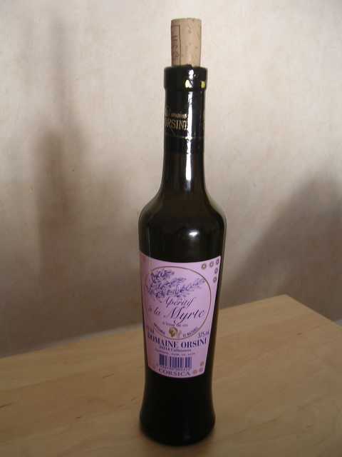 今週は火曜日がキリスト教の祝日だったこともあって、月曜の夜に友人達と家で食事をしました。7月中に地中海のコルシカ島へバカンスへ行ってきたという彼らからもらったおみやげは、地中海に生息する常緑樹マートル(仏名Myrte. 和名は銀梅花)の実をワインに漬け込んだ食前酒でした。 コルシカ島ってどこ?マートルとは?友人間でもフランスで夕食に招待されると、まず食前酒のアペリティフを薦められることが多いです。食事中はお酒を飲まないという友人もいますが、そんな人でも家には食前酒用に数種類のリキュールが常備されていたり。気軽に入れるレストランなどでも、食事の注文前に大抵「アペリティフはいかがなさいますか」と聞かれます。アルコールを飲まない人はオレンジジュースやトマトジュースを頼むことが多いですね。そんな食前酒文化に馴染んでしまった今は、人が来ていなくても家で食前酒を飲むこともあります。(ビールを飲む時は最初から最後までビールになってしまいますが)授乳がなくなってからもしばらくは食前酒を控えていましたが、先月の暑さも手伝ってすっかり食前酒習慣が復活してしまい、このマートル酒も美味しくいただきました。飲んだ感想。いわゆるベルモットですね。日本でもイタリア製のチンザノなどが有名ですが。フランスでよく見かけるベルモットは、下の写真にあるMartiniです。これもイタリア産のようですが、レストランやカフェのリストにも「Martini」とあり、とてもポピュラーです。そしてこのコルシカのマートル、「職人の手作り Artisanal」と謳っているだけあって、甘さも控えめ♪氷を入れてロックもいいですが、夏は冷蔵庫で冷やしてストレートで飲むのもいいですね。量は控えめながらもこうしてたまにアペリティフを楽しんでいます。
