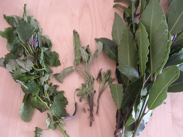 とはいっても、うちの庭ではなく・・・友人宅の庭に茂っていた(という表現が正しいくらい生い茂っていた)ハーブ、写真左からレモンミント、セージ、ローリエを貰ってきました。摘んでから写真を撮るまでちょっと時間が経ってしまい、採れたての瑞々しさは損なわれてしまいましたが、まだまだプンプンと香っています。ミントやローリエは使い道もすぐに想像できるのだけれど、セージって何に使うんだっけ?と友人と共に考え込み・・・すぐに思いついたのは、セージ入りのソーセージ。後から気づいたのですが、ギャグではありません・・・でもソーセージを手作りするわけではないし、もっと手軽に使える方法はないかと。結局肉の臭み消しに適しているのだろうと、肉料理に使うことに。という訳でこの日の夕飯はル・クルーゼの鍋を使った、牛肩肉とかぶをメインにした、トマト味の野菜スープにしました。これにローリエはもちろん、最後のほうでセージを刻んで入れてみたら、あらビックリ!の後味すっきりな一品になりましたよ。※※料理の写真もあとで撮れたらアップ予定※UPしました!写真を撮る際、アクセントにミントの葉をちょっと足してみたのですが、何が入っているのかよくわかんなくなってしまいました(汗)因みに使っているル・クルーゼ鍋はこれと同じタイプ&色の28cm径のものですここ(ル・クルーゼで七草粥をつくる)にも全景が写っていました。これは頂き物ですが、今度自分で買うときは小さいココットロンドを選ぶと思います。やっぱり重くて洗う時が大変!それでも懲りずに使い続けられる良さはあるのですけれど・・・後で知ったのですが、セージは肉料理の後に口をすっきりさせる目的で、ハーブティーとして飲むことも多いんですね。今回は生で使いましたが、乾燥させたセージのほうが香りも高いようです。また貰ってこなきゃ♪