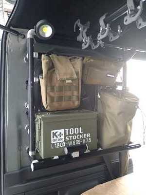 今朝起きるで外を見ると完璧なまでに雨ザーザー。N-VANのパーツ塗装が残っているのにこれではちょっと無理。(←青空塗装だから)となればできる事をやりましょうと、ラゲッジスペースのDIYを進めました。なんだかんだで朝から夕方までやってたけど、楽しい事してると時間はあっという間だったなwアルミフレームでラックを組んでポーチをセットこちらも同様にセットマガジンポーチやドラムポーチは納車までの間にネットで探して買い溜めしといたもの。やっと使える日が来た事への喜びが半端ないwサイドバーは別で設置する計画だったけど、ラック最上部のフレームを長い物に交換すればサイドバーになる事を思い付き早速改造。と言いながら長いフレームがないからまだ仮設置状態。アマゾンでポチッときました。ところでこのラック、晴れ太クオリティーではなくコピー品。Youtuberのwinpy-jiji(通称ジジイさん)が紹介されて流行らせた収納スタイルです。見た瞬間にカッコエ~!!!と思い、いつか自分の車に設置しようと思いながらやっと実現できました。しかし完コピではなく、ジジイさんのウッドベースに対し晴れ太はアルミフレームベースとちょっとだけオリジナル感を出しているところが我ながら可愛い。ソウカ(。´・ω・)?N-VANを購入した背景には少なからずジジイさんが影響しており、参考になるアイデアが山盛りなので日夜アレンジを考えてます。N-VAN楽しい~♪