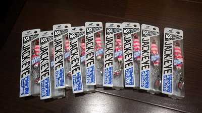 愛してやまないジャックアイ-マキマキこのド派手なピンクのゼブラカラー。初見はなんじゃこれ?と思ったのに、使ってみたらエースで4番の大活躍!今じゃなくてはならないルアーになってます。が、このカラーは限定色ですでに生産は終了。もう2度と手に入らないと思ってたのに、ぶらりと入った釣り具屋に偶然並んでいるのを発見。オッ(._.)光の速さで並んでいたすべてを買い占め、ニヤニヤしながら帰ってきたのでありました。昨日部屋が片付かないってアップしたばっかりなのに、そりゃそうだよね・・・って感じです。