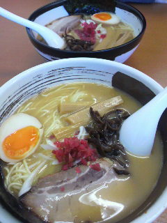 月曜日って定休なラーメン屋さんが多いの中、「濃厚ラーメン じゅん」さんはやっているので助かります。 ヘルシー無化調でとっても美味しいんだけど、化調ありきのラーメンを食べ慣れている人には淡泊に感じてしまいがちでけっこう好みが別れる味なんで、どうかと思ったけど、連れも大満足だったようで良かった。こってりの塩のとんこつと鶏白湯を食べ比べ。どっちも甲乙つけがたく美味しかったです。