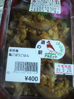 昼に道の駅で買った鶏ごぼうご飯、結局食べなかったから、夕飯に。 意外と美味いし。 (* ̄O ̄)ノ