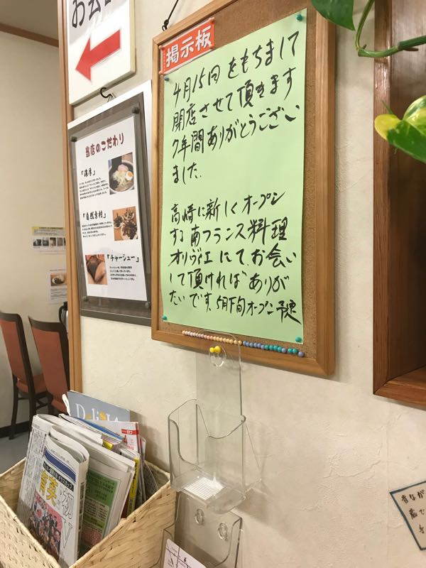 年のせいか最近は外食することもとんと減り、特にらーめんへの情熱がすっかり冷めてしまったので、なかなかラーメン屋さんに行く機会も減った中、割とコンスタントに通っていたお店だっただけに、いざ無くなるとほんとさびしいなって。