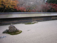 ★龍安寺 (京都市右京区)★もと徳大寺の別荘を、宝徳2年(1450年)に細川勝元が譲り受け、禅寺として創建。その後焼失し、明応8年(1499年)細川政元が再興した。禅の心を表す石庭は世界的に有名。世界文化遺産。仁和寺から歩いて約15分。こちらも世界遺産の龍安寺。龍安寺といえば有名なのは「石庭」。う~ん、思ったより狭かったです。。しばし石庭を鑑賞するも…ムムム、禅ってやっぱよくわかんない。(笑)境内も広く、立派なお寺でありました 石庭。…禅の世界は奥が深いなあ…。 鏡容池。池の周りをぐるりと一周できます。 鏡容池の紅葉。赤と黄色のもみじが綺麗です。
