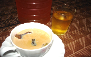 今日は久しぶりの休日だったので、インド料理の勉強も兼ねて、知人のパキスタン人が営むお店に行ってきた。うっかりデジカメを忘れて来たので画像は撮れなかったのは残念ですが、私がオーダーしたマトンカリーのランチを紹介します。マトンカリー とナン もも肉のタンドーリチキンとビリヤニー(チャーハンのようなもの)がついてきた。ナンにカリーを漬けて食べると、オニオンの甘味と、とろとろになったやわらかーいマトンのうまみ、スパイスのハーモニーを十分に堪能した。これが本場の味なのだろう。一つ気になったのは「ギー」(羊、牛などの脂肪を固めたラードのようなインド独特の調味料)これが結構入ってたようにおもう、これを入れるとカリーに風味はでるが日本人に合わないのではないか、おいしくいただいたがお腹が膨張してパンパンになってしまったではないか。ダイエット中だったので食後しばらくしてからプールに行っていつもの倍以上は泳いだ、5キロぐらい泳いだと思う。それでもお腹の中のギーの余韻は消えなかったので部屋に戻って映画を見てからラマーズ法をやって寝ました。老若男女誰にでもおいしくいただけるカリーです。