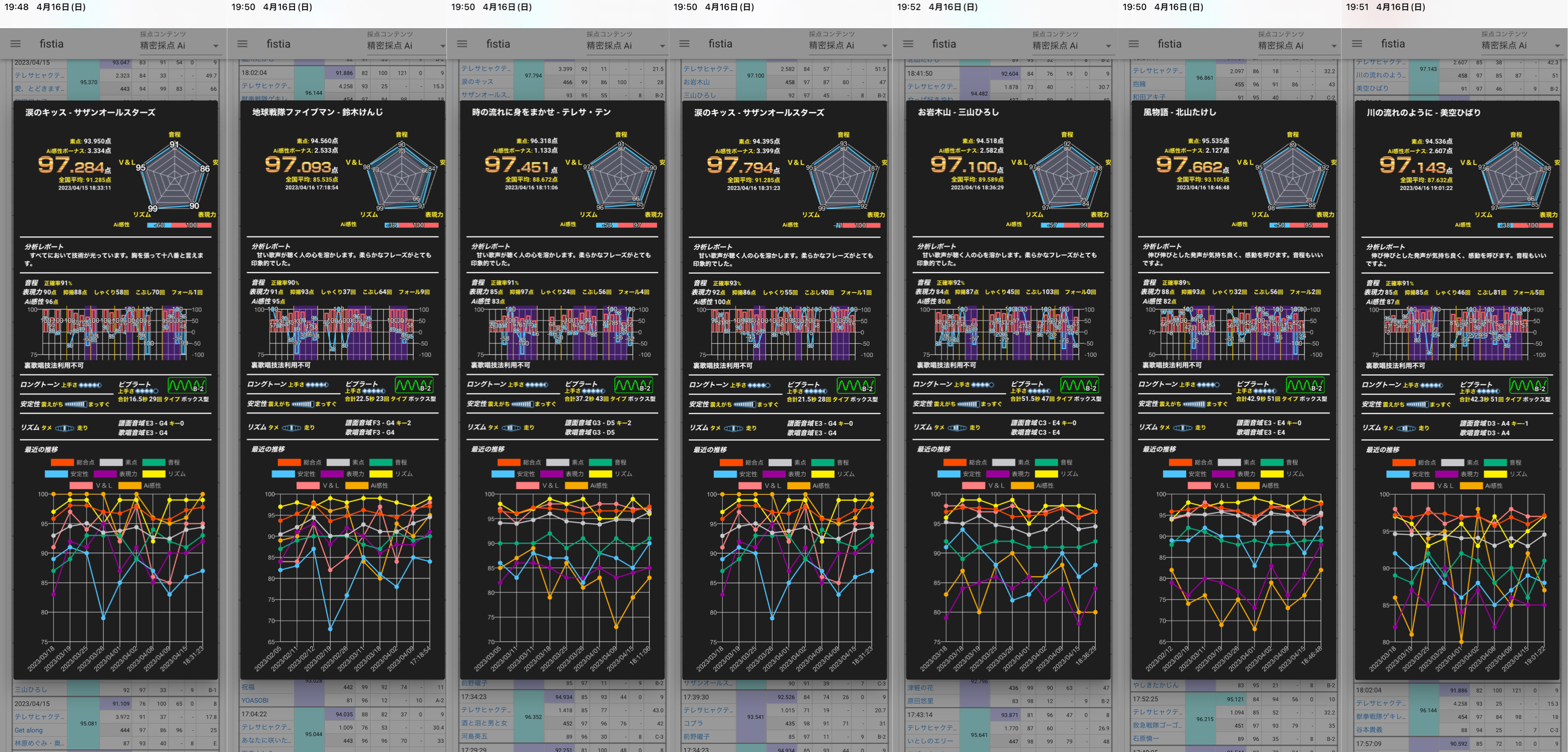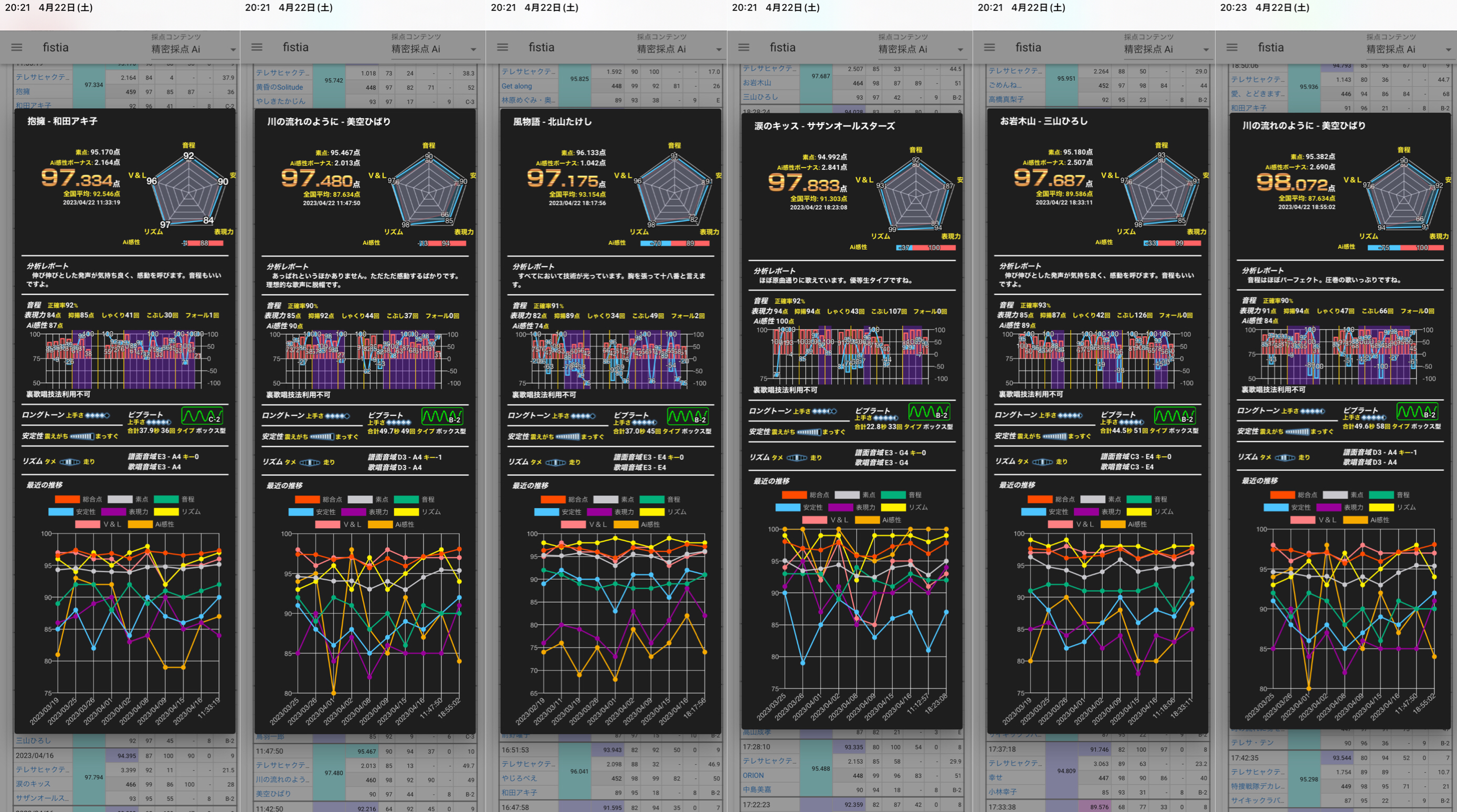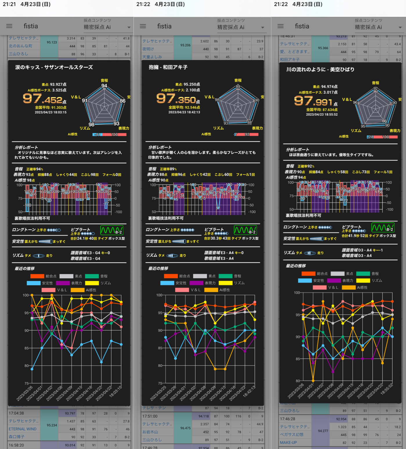 例えば、ある曲が平均的に90点程度である場合、97点は優れたスコアと言えます。しかし、同じ曲が平均的に60点程度である場合、97点は非常にすごいスコアと言えます。