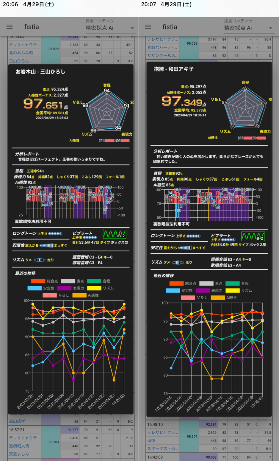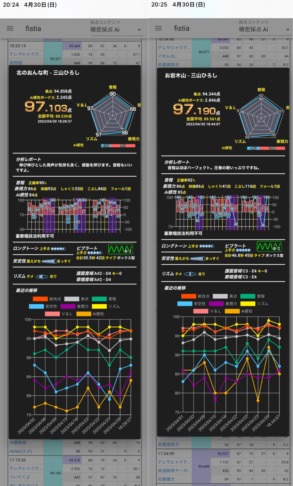 Aiになったおかげで、旧型機で異様な歌唱で高得点だった人の点が下がり、逆に私のような自然歌唱派の人の点が上がり差が縮まりましたが、本日改めて実感しました。