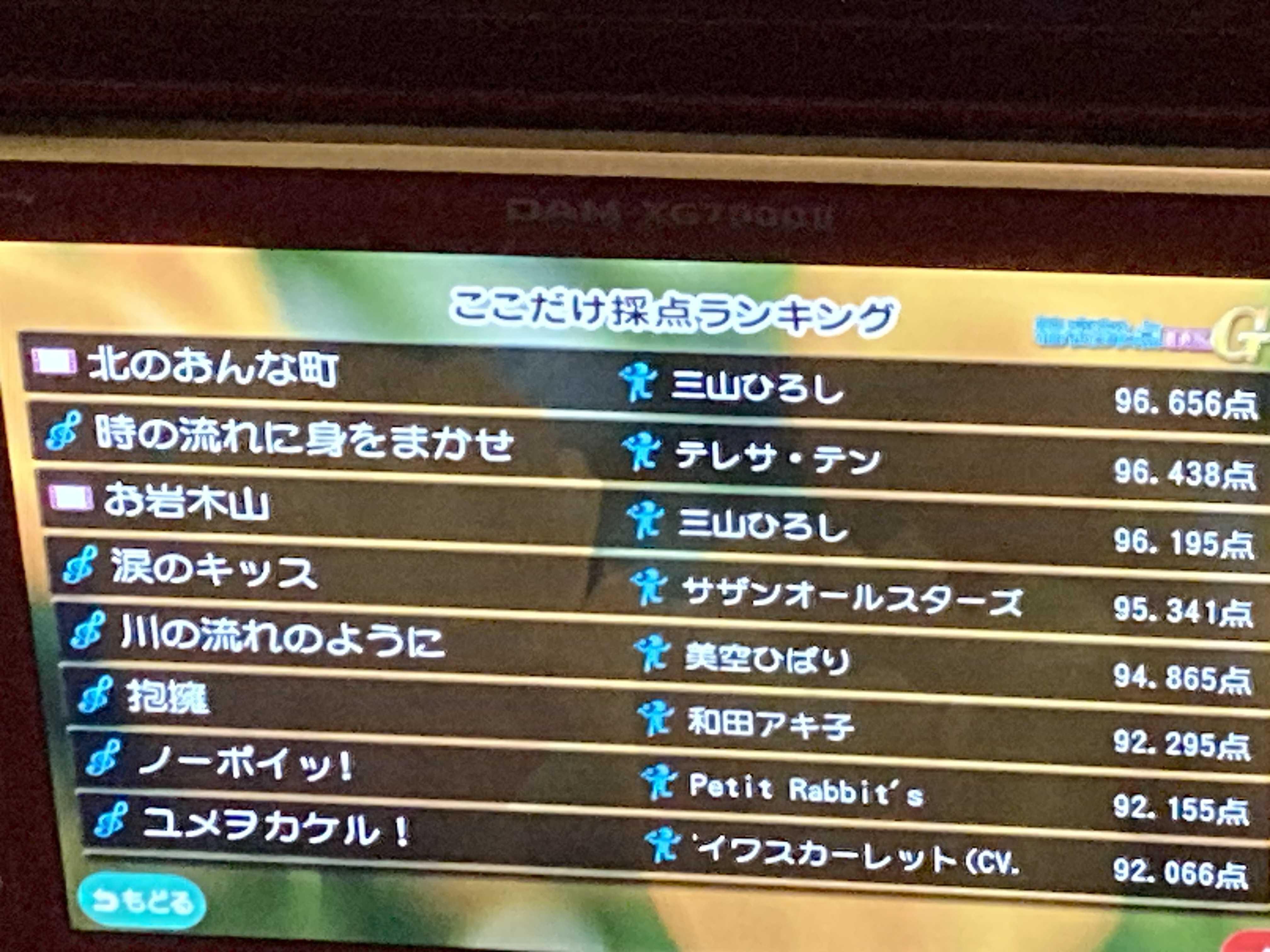 鍼待ち時間のカラオケは、GWで混んでて旧型機の部屋でした。Aiの調子で歌ったのですが、なかなか昔ほど点が取れないですね。