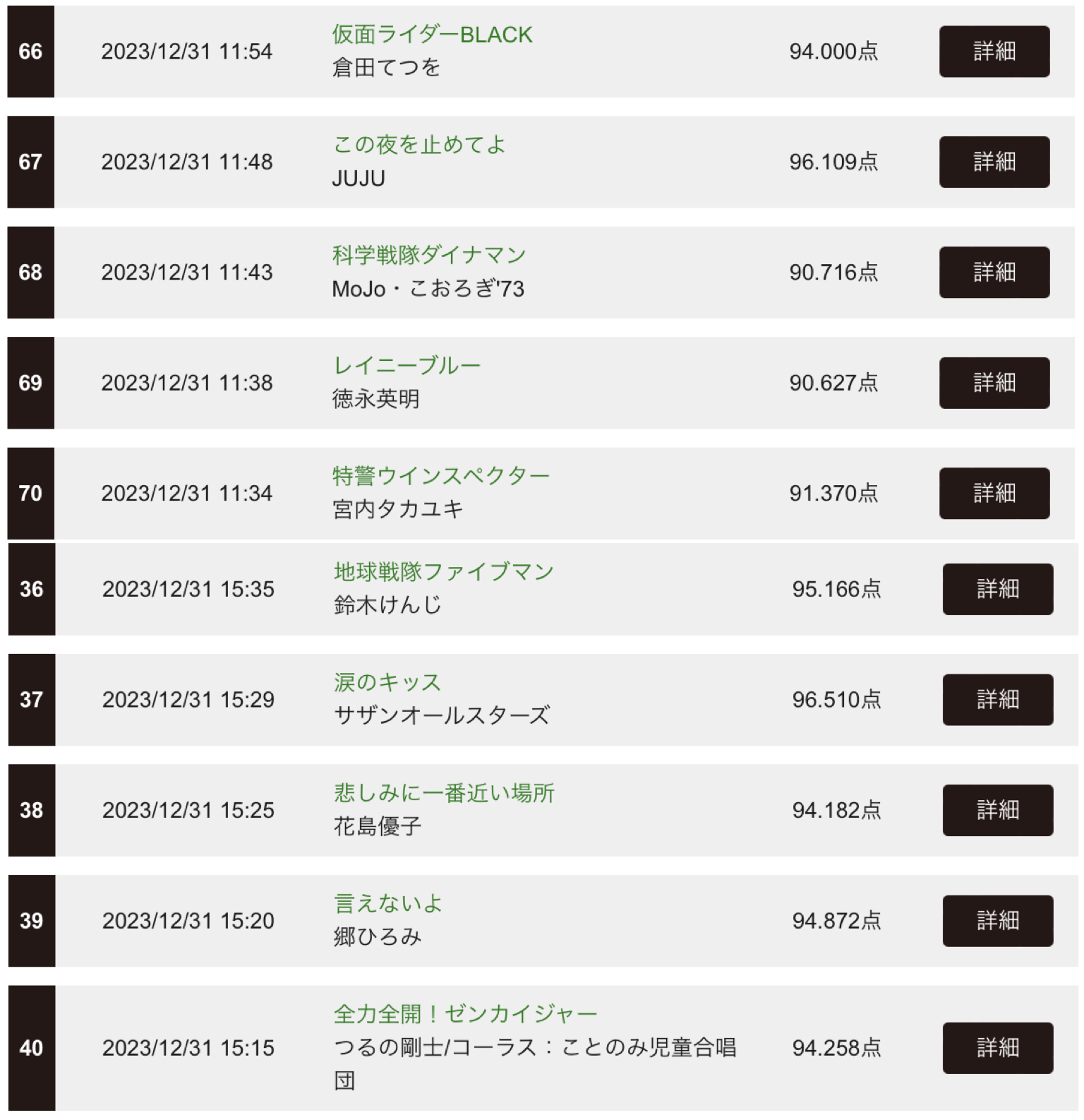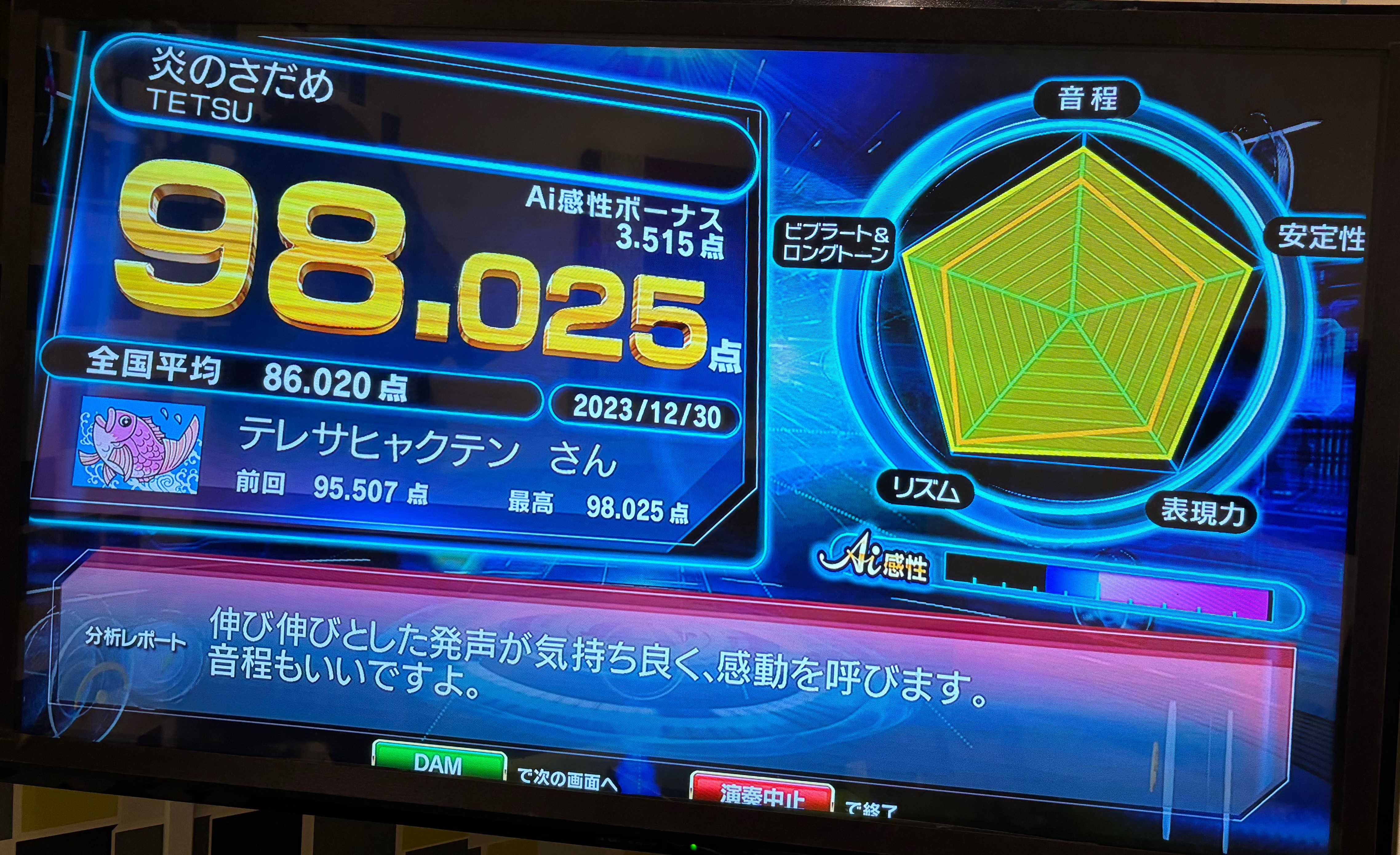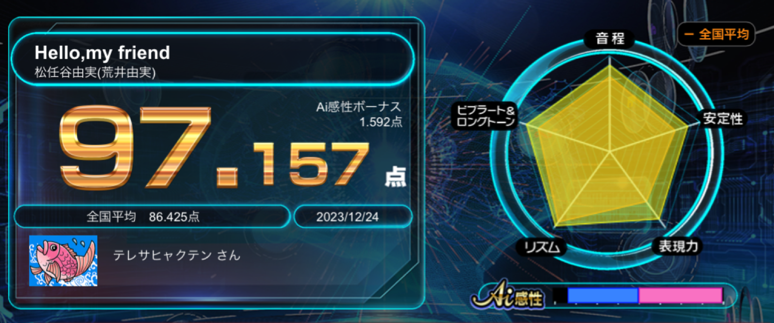 私はアッコさんのようなポテンシャル型の歌手なので、普通の人が出せない音域のポテンシャルが生きる歌はまだ点数はいい方だけど、そういうのが活かせない歌は軒並み下がっている。