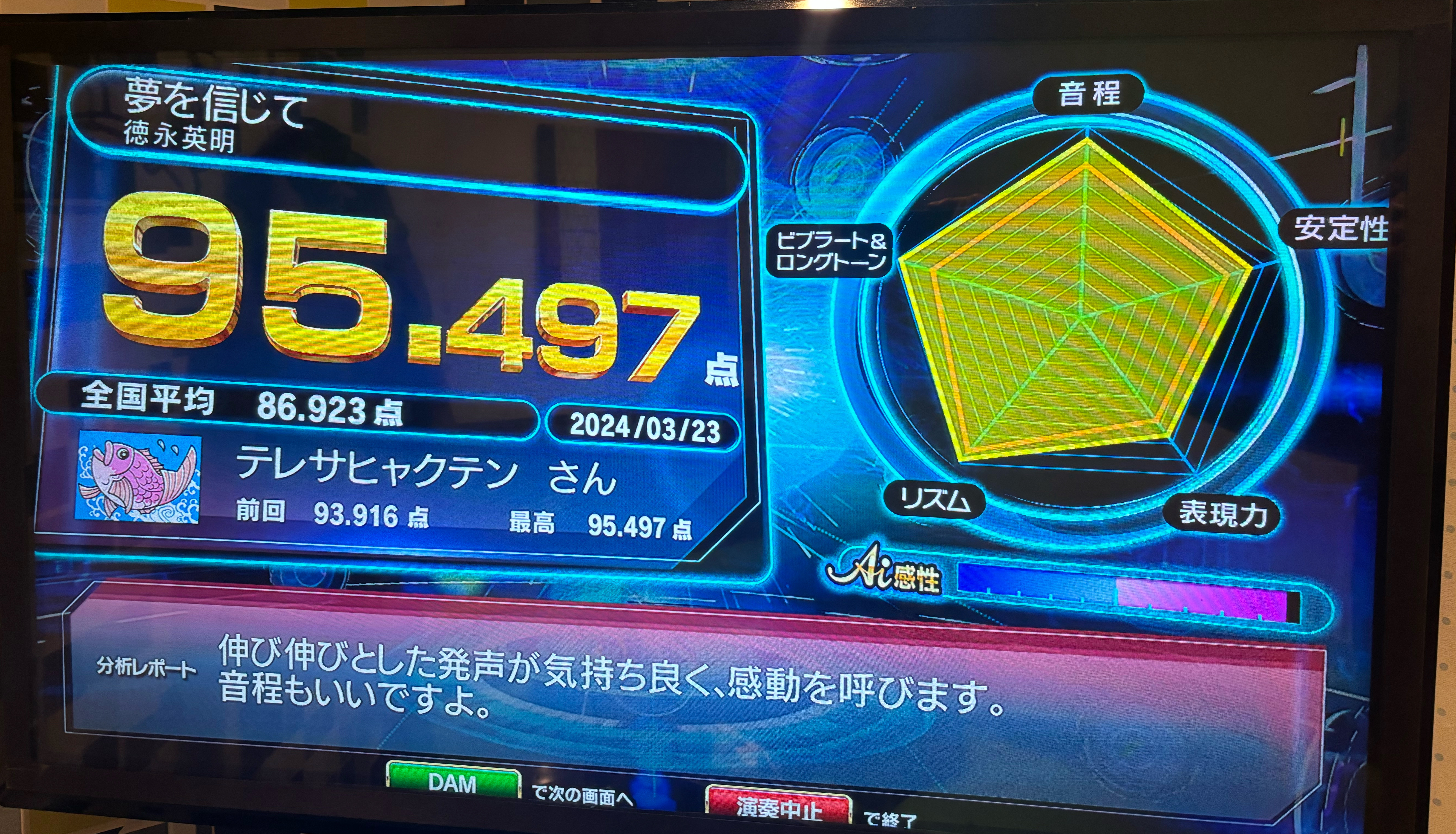 なんとか年度末にそこそこ上手い点数をとれました。フリーレンの最終回の余韻がまだ抜けていないはずなので、間に合ったと言えるでしょう。やればできる‼️