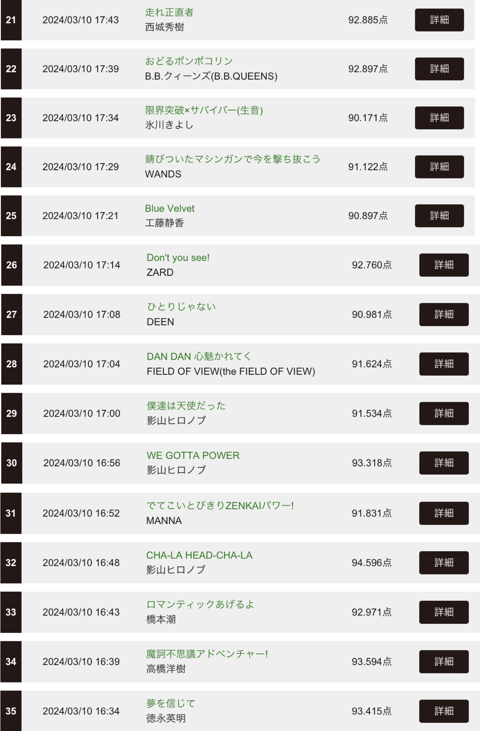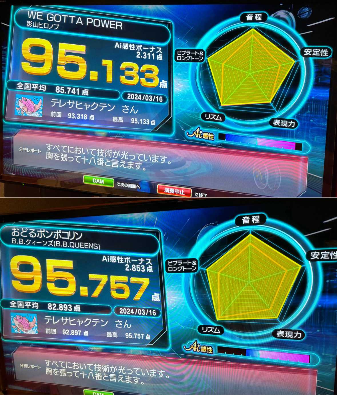 この点数では成仏は到底無理でしょう。平均点が低い難曲が割とあって苦戦しました。ちびまる子ちゃんは2曲しか知らないので不利だが、逆に言えば集中できる。久々に歌っても90点以上なのだから可能性はあるかも!?