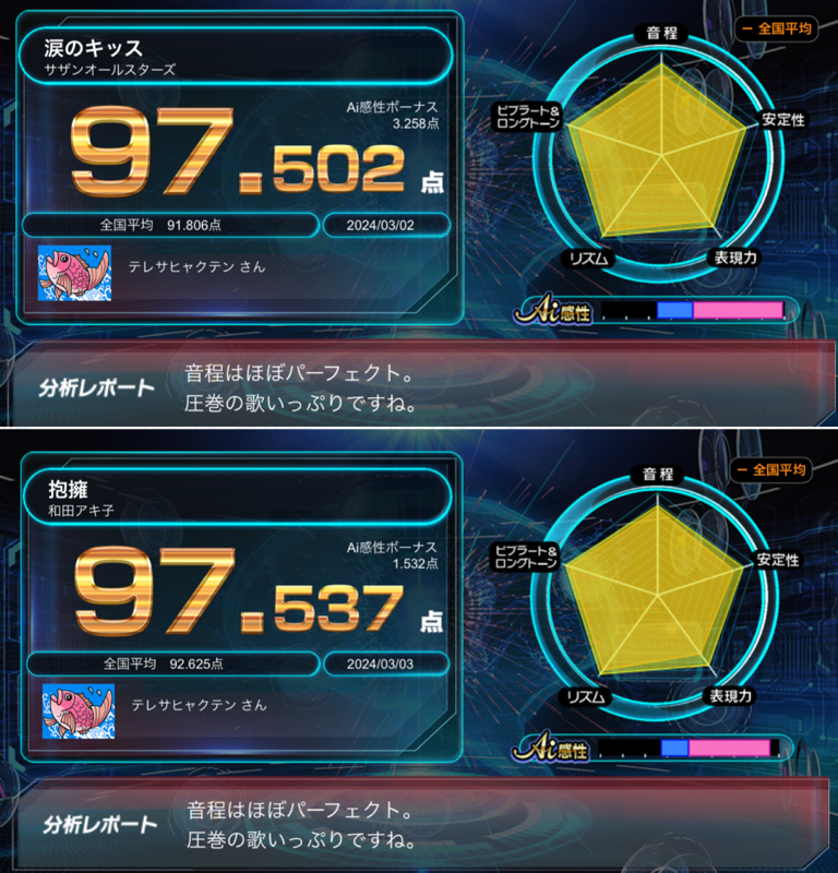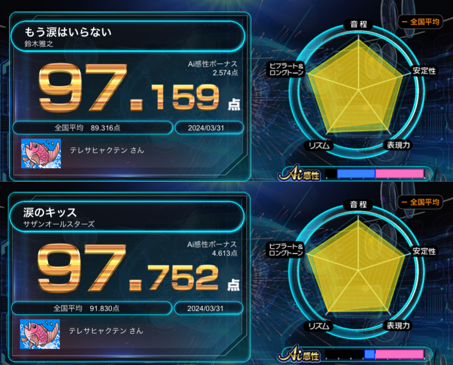 今週は追悼歌唱で忙しそうですね。そこそこ上手い点数を取って成仏させたい。