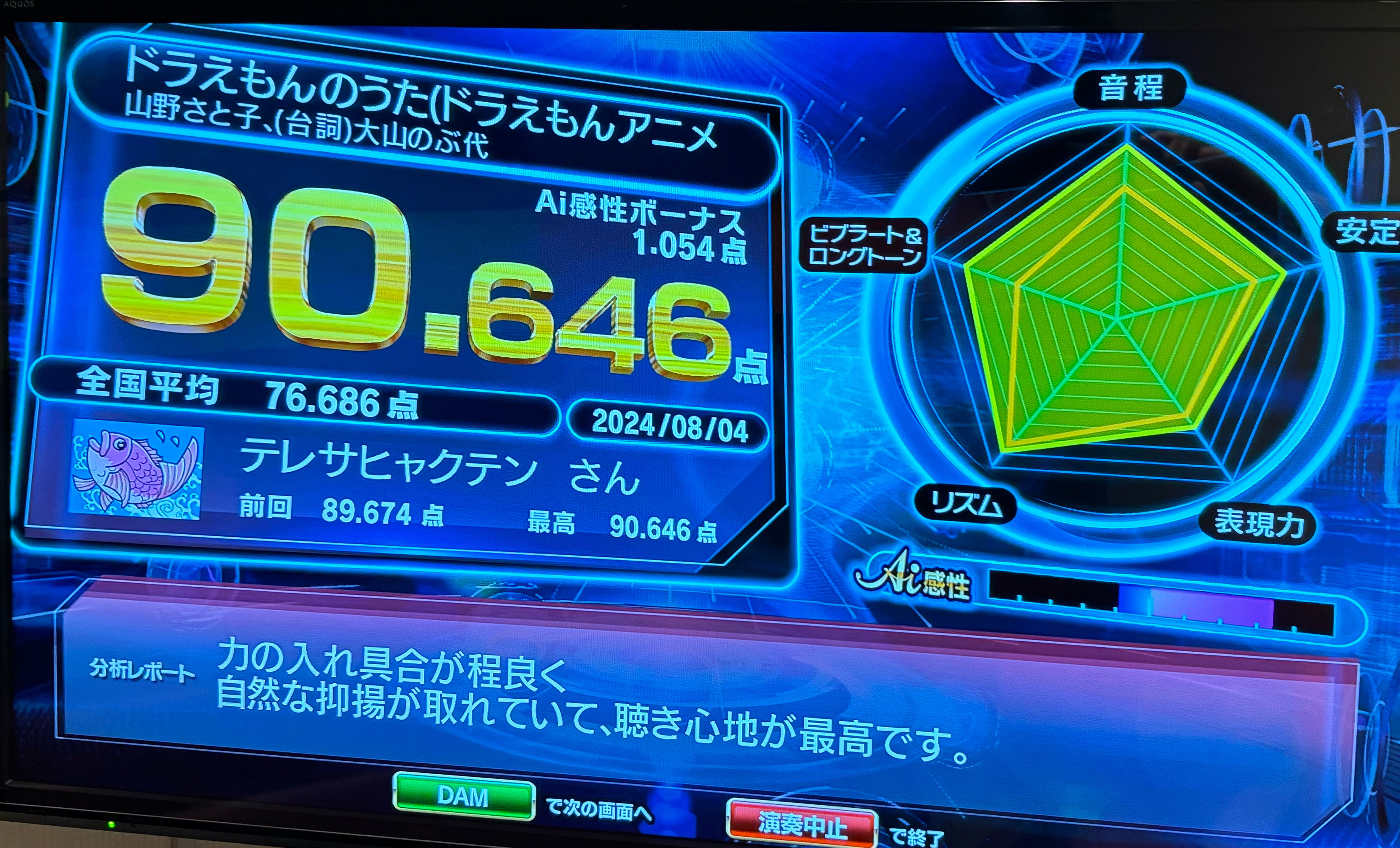 ドラOPでギリ成仏点数を取れたので成仏を補強できました。うまく歌ってくれてありがとうと、のび太が感謝しているビジョンが見えた気がします🥹