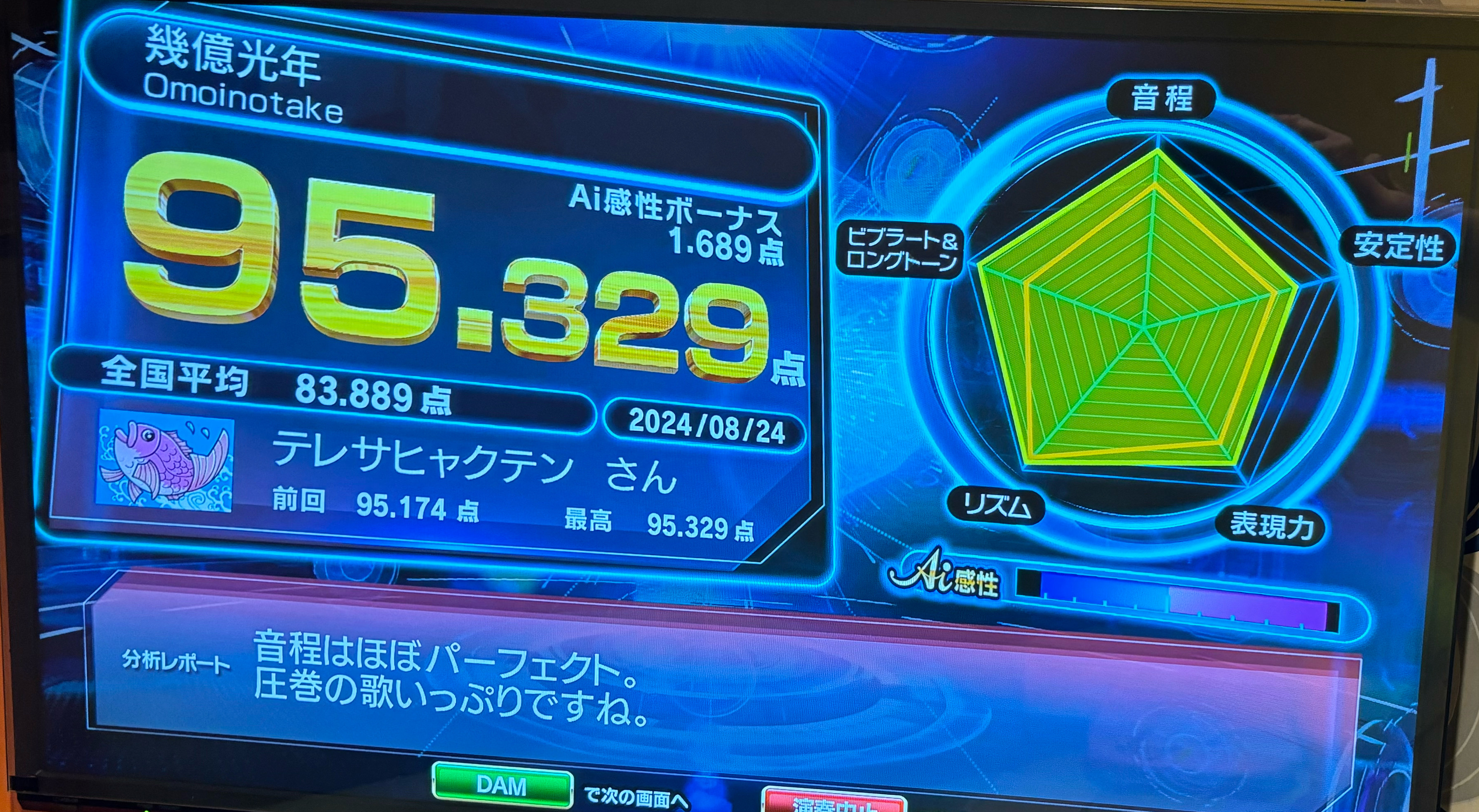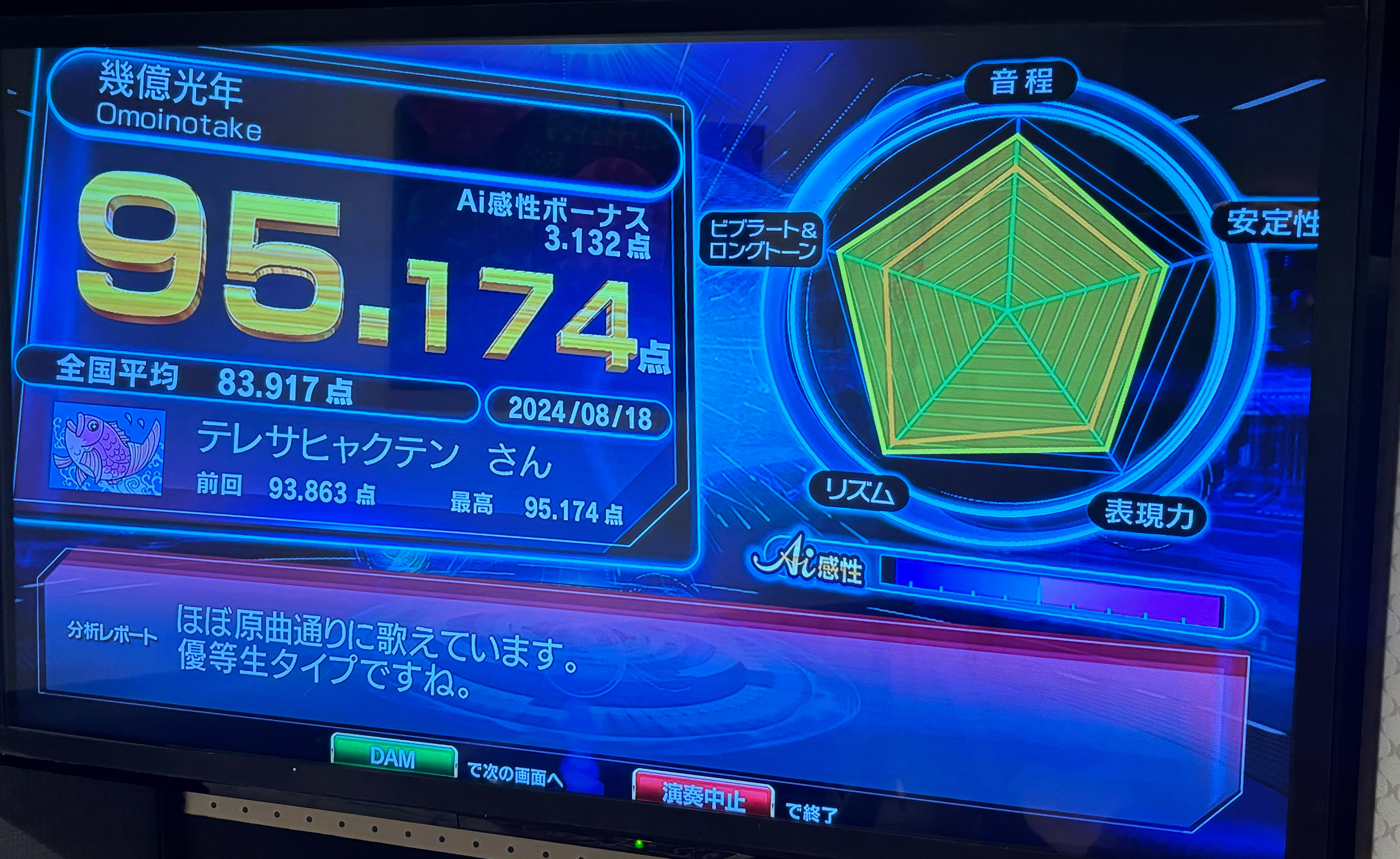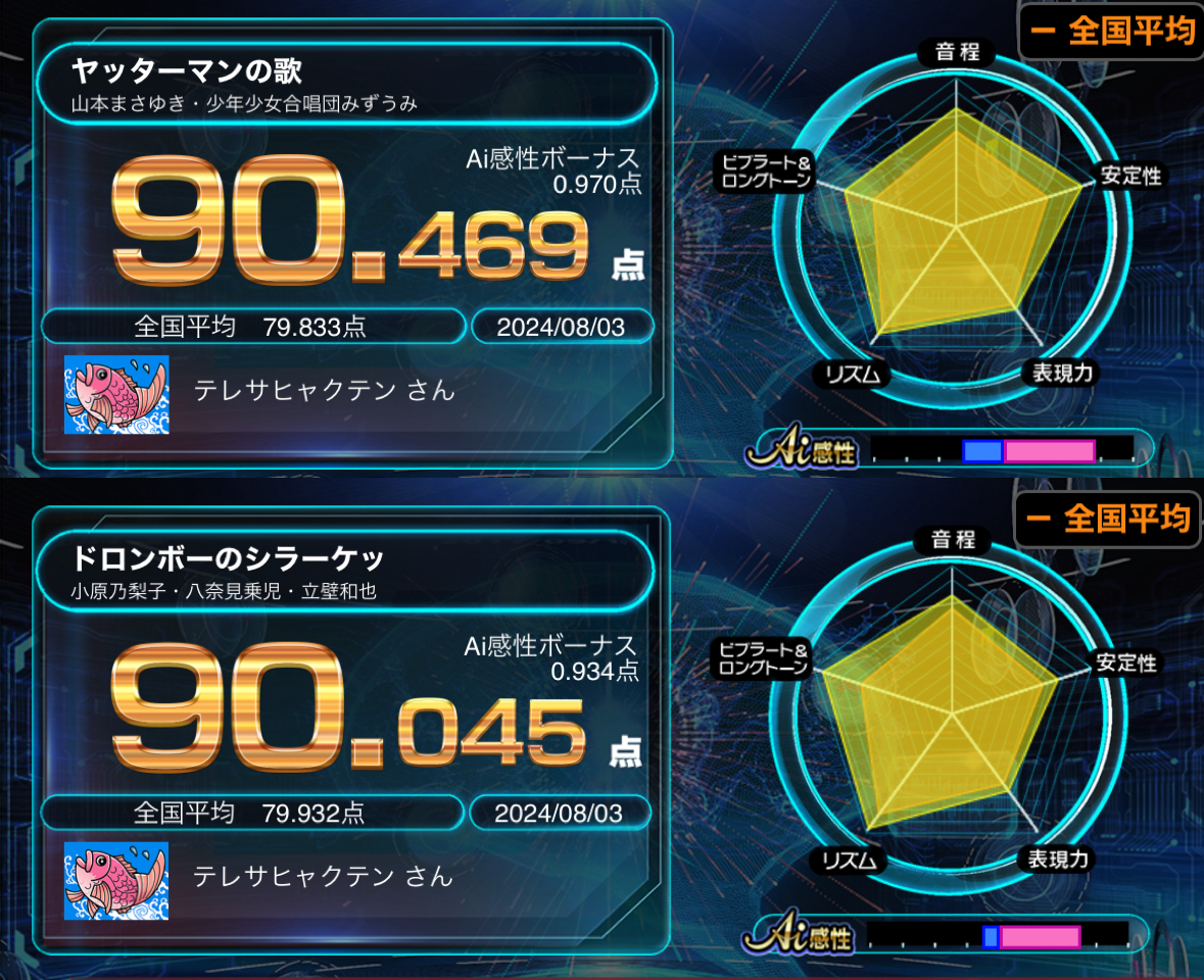 主役アニメの曲でもギリ成仏はできる点数を取れたので良かったです。