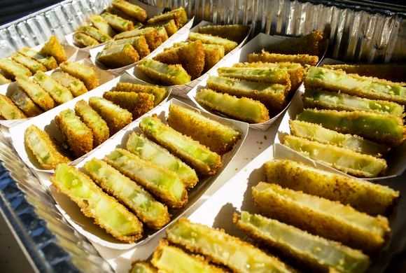 ローカルのグリーントマトに衣をつけてカラッと揚げた一品。