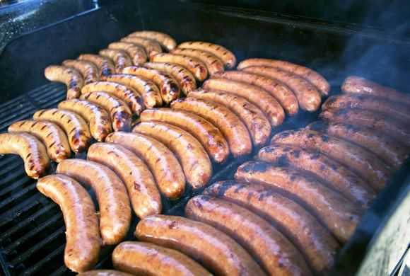 煙をあげながら次々と焼き上げられる粗挽きソーセージは、肉汁がこぼれ落ちるジューシーさ。ポルトガル風、チキン、イタリアンなどの味があり。