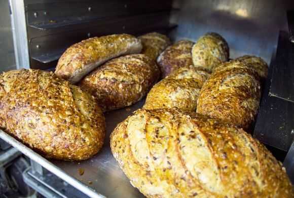 焼きたてのパンがずらりと並べられたパンコーナーを発見。翌日の朝食用にひとついかが?もちろんその場で食べても OK
