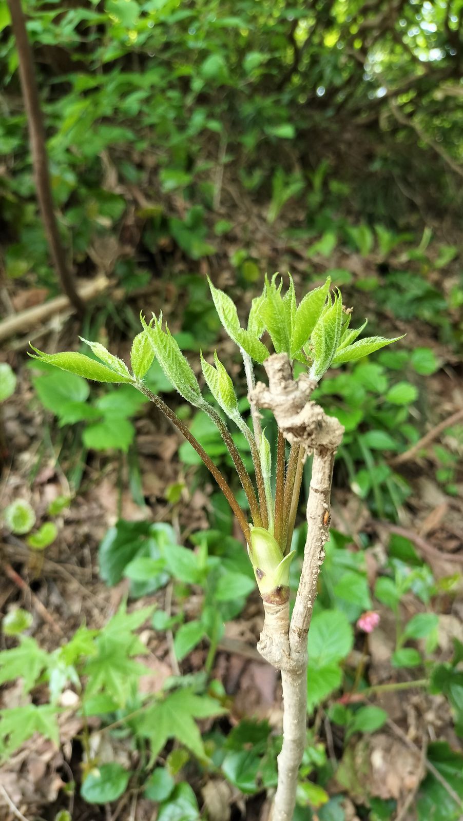 南蛮山散策【2025.05.19】今日は、晴れ/曇りの予報でしたがしっかり晴れました。今日で、春の山菜採りは最後にしました。(十分、楽しませてもらったな…)(近場で採らせてもらい、山に感謝です。)9:20~11:202時間山歩きをしました。途中で、首のまわりがチクチク…ウルシ?かなにかにかぶれたようです。( ノД`)シクシク…平日ですが、車が数台停まっていました。山でお会いした方々にご挨拶しながら散策しました。木の芽・ウド・ワラビを採らせていただきました。明日は、病院へ検査…藤の花ウツギの花