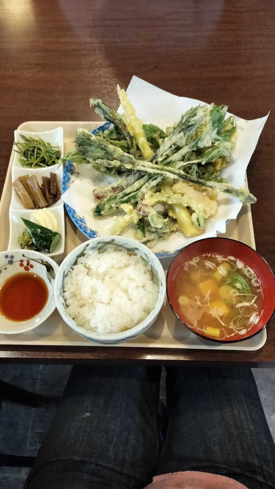 お店の方に聞くと、今日が山菜天ぷら御膳の最後だそうです。