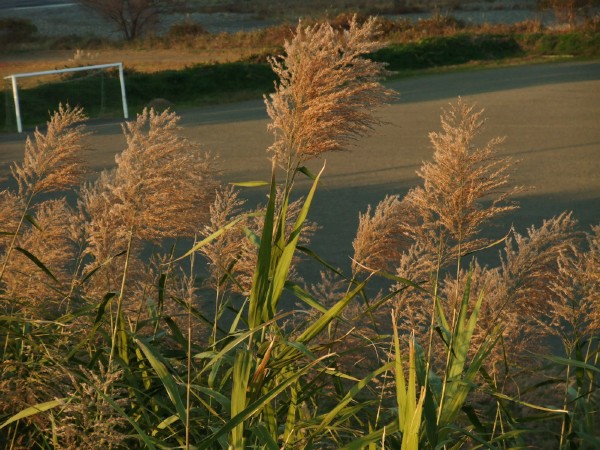 川岸の道を歩くと、ススキの風に揺れる音さえ聞こえる。