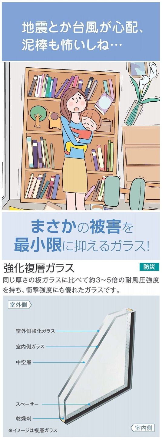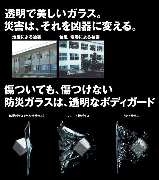 》来店不要、現場確認、見積りは無料《 窓ガラス修理、窓ガラス(防災硝子)交換は、富山県内全域に対応します。富山県西部:高岡市、射水市、氷見市、小矢部市、砺波市、南砺市富山県東部:富山市、滑川市、中新川郡、魚津市、黒部市、下新川郡 いい製品を、どこよりも安く! 「窓ガラスが割れた」、「エコ内窓のカギ(クレセント錠)が壊れた」、「防犯ガラスに交換したい」、「高性能トリプルガラス樹脂窓に興味がある」など、窓ガラスの修理から、ニーズに対応した窓のリフォーム工事まで、窓まわりのことなら何でもお任せください。窓の専門店です。 AGC 防犯機能を強化した防災ガラス ラミセーフセキュリティー傷ついても、傷つけない。防災ガラスは、透明なボディガード。透明で美しいガラス。災害は、それを凶器に変える。事故・犯罪・災害 日常から非日常までカバーする、安心の新基準。 防災ガラスとは、「合わせガラス」のことです。強靭な特殊フィルムが二枚のガラスの間に接着されているため、強い衝撃を受けてガラスが割れたとしても、砕け落ちることはありません。また割れた状態でも窓枠に留まりますので、被災後も内部空間を保全し、風雨にさらされることがありません。特に学校など、広域避難場所に指定される公共施設には、是非、この「合わせガラス」による防災ガラスの採用をおすすめします。 》施工実績・トップクラス・創業41周年《 【工事の流れ】1.事前の打合せ。窓まわりの大きさや窓ガラスの種類を確認。2.工事開始。古いガラスを撤去して、新しい防災ガラスを設置。3.建付調整・チェックを行い工事完了。 【工事時間】 約1時間。 現場確認、見積りは無料!まずはお電話ください! 24時間受付 0120-375-345アルミ建材和田 〒933-0062 富山県高岡市江尻856-2 価格保証 かならず他店より安くします!ぜひ、ご相談ください! (社)日本サッシ協会加盟店(社)カーテンウォール・防火開口部協会加盟店 ◇スタッフは、(社)富山県建築組合連合会に加盟した高岡市の建築組合員です。富山県建築組合連合会では、市や町のご協力のもと県内13箇所で、『無料の住宅相談所』を開設しています。富山県の気候風土に適した丈夫で快適な新築や増改築はもちろん、住宅診断や耐震補強工事まで、住まいのことなら何でも、お気軽にご相談ください。 【富山県西部:営業エリア】高岡市、射水市、氷見市、小矢部市、砺波市、南砺市【富山県東部:営業エリア】富山市、滑川市、中新川郡、魚津市、黒部市、下新川郡 【所在地】富山県高岡市江尻856-2 Tel 0120-375-345 【取扱メーカー】三協アルミ、YKK AP、リクシル、旭硝子、日本板硝子、美和ロック、住友3M 来店不要!(電話で、24時間受付中!)