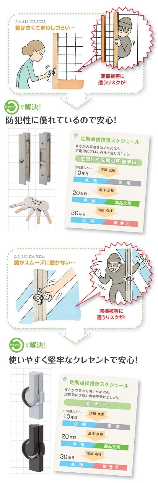 》来店不要、現場確認、見積りは無料《 カギ(錠)の修理、カギ(錠)の交換は、富山県内全域に対応します。富山県西部:高岡市、射水市、氷見市、小矢部市、砺波市、南砺市富山県東部:富山市、滑川市、中新川郡、魚津市、黒部市、下新川郡 ◆地域に根差した窓・ドアの修理の専門店です。お気軽にご相談ください。 いい製品を、どこよりも安く! 「玄関ドアのカギ(ハンドル錠)が閉まりにくい」、「エコ内窓のカギ(クレセント錠)が壊れた」、「家族を守りたい。住まいの防犯性を高めたい」、「高性能のシリンダー錠に興味がある」など、鍵(錠)の修理から、ニーズに対応した防犯リフォーム工事まで、住まいの防犯対策のことなら何でもお任せください。 》施工実績・トップクラス・創業41周年《 【工事の流れ】1.事前の打合せ。カギ(錠)の大きさやカギ(錠)の種類を確認。2.工事開始。古い錠を撤去して、新しい高性能シリンダー錠を取付け。3.建付調整・チェックを行い工事完了。 【工事時間】 約1時間。 現場確認、見積りは無料!まずはお電話ください! 24時間受付 0120-375-345アルミ建材和田 〒933-0062 富山県高岡市江尻856-2 価格保証 かならず他店より安くします!ぜひ、ご相談ください! (社)日本サッシ協会加盟店(社)カーテンウォール・防火開口部協会加盟店 ◇スタッフは、(社)富山県建築組合連合会に加盟した高岡市の建築組合員です。富山県建築組合連合会では、市や町のご協力のもと県内13箇所で、『無料の住宅相談所』を開設しています。富山県の気候風土に適した丈夫で快適な新築や増改築はもちろん、住宅診断や耐震補強工事まで、住まいのことなら何でも、お気軽にご相談ください。 【富山県西部:営業エリア】高岡市、射水市、氷見市、小矢部市、砺波市、南砺市【富山県東部:営業エリア】富山市、滑川市、中新川郡、魚津市、黒部市、下新川郡 【所在地】富山県高岡市江尻856-2 Tel 0120-375-345 【取扱メーカー】三協アルミ、YKK AP、リクシル、旭硝子、日本板硝子、美和ロック、住友3M 来店不要!(電話で、24時間受付中!)